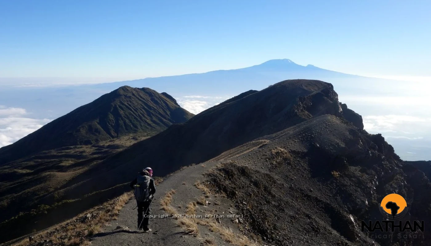Located inside Arusha National Park, the trek offers a unique experience combining wildlife encounters, diverse vegetation zones, and spectacular crater views. Unlike other mountains, Mount Meru trekking begins with a walking safari through open grasslands where giraffes, zebras, buffaloes, and other wildlife may be seen.
