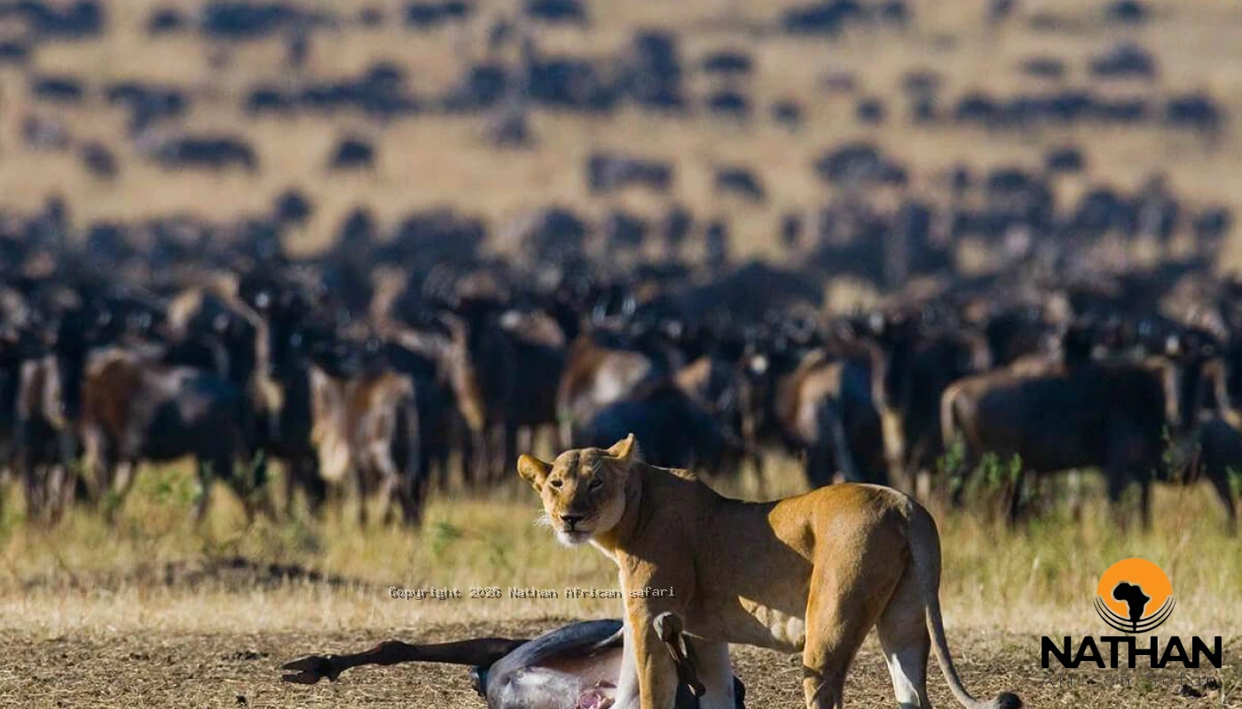 Between December and March, thousands of wildebeest give birth daily. This attracts predators including: